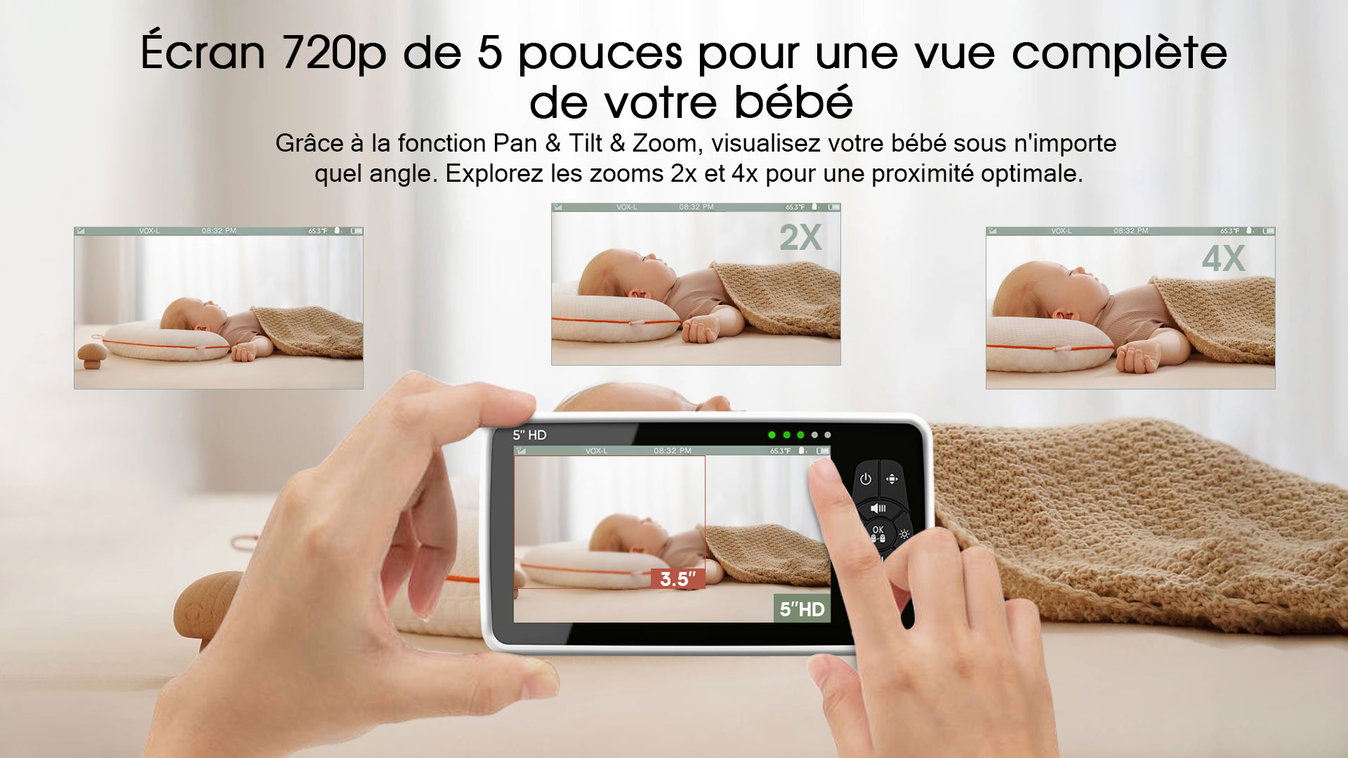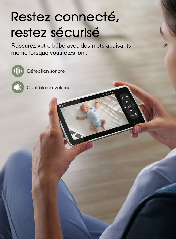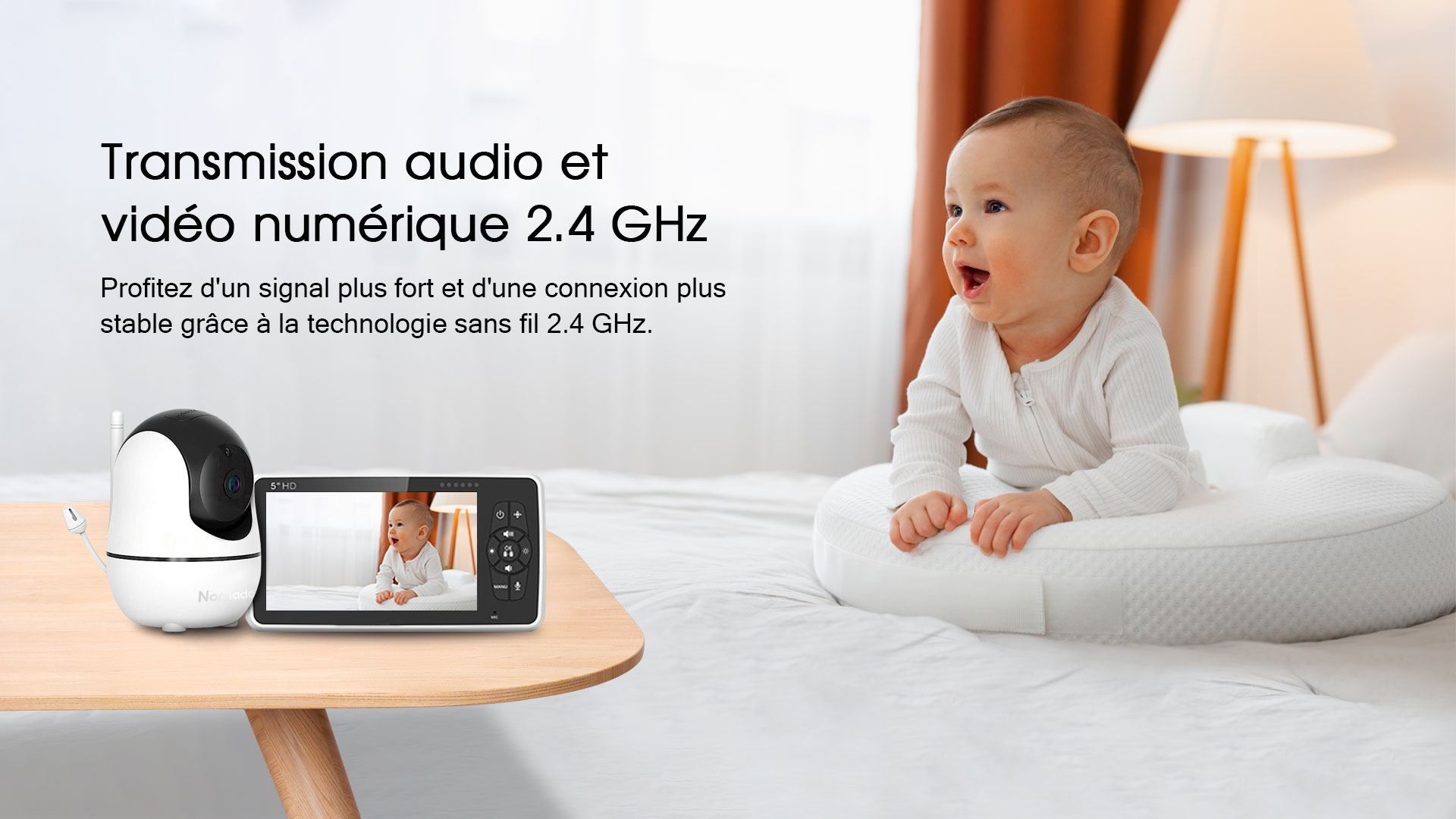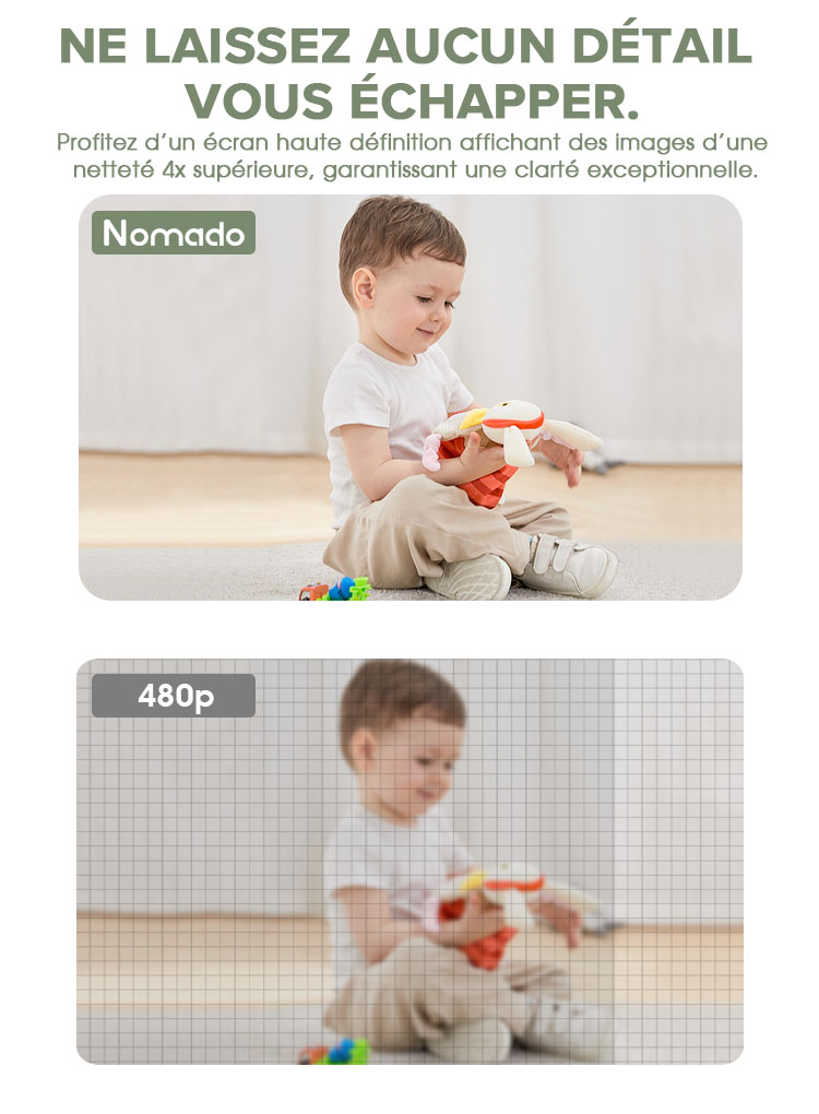 Dites adieu aux préoccupations diurnes et nocturnes avec l'écoute-bébé Nomado ! La vision nocturne automatique offre des images claires en noir et blanc même dans l'obscurité totale, sans lumière rouge pouvant perturber votre bébé. La batterie de 4000 mAh assure 25 heures de surveillance en mode VOX, économisant l'énergie en interrompant la transmission dans les pièces calmes, ne vous alertant qu'au premier son.